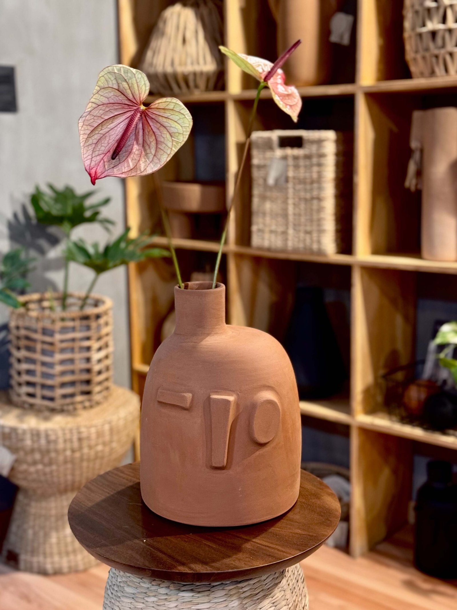 Cuidados: Pieza únicamente para interior, evitar exposición prolongada a la luz solar directa, y evitar por completo su exposición al agua. La limpieza en seco es la mejor opción para eliminar manchas o limpieza ocasional. Debido a que es una pieza de barro natural puede presentar algunas manchas propias del barro y el cocido en horno de forma artesanal