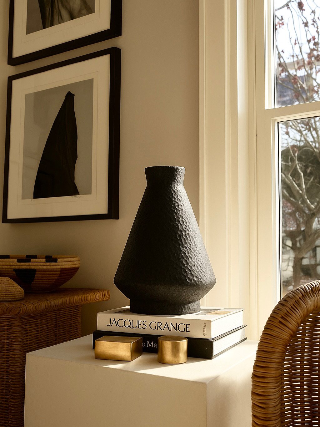 Jarrón de barro martillado negro. Amarás esta colección, con las formas sutiles y exquisitas de cada modelo. Debido a que es una pieza de barro puede presentar algunas manchas propias del barro y el cocido en horno de forma artesanal. Por su proceso, cada pieza será exclusiva y única con tonalidades y texturas propias.