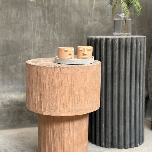 Mesa auxiliar de concreto. Esa pieza perfecta y especial que necesitas para que tu espacio brille con luz propia. Pieza de uso interior y exterior. Debido a que es una pieza de concreto hecha a mano puede presentar irregularidades, así como manchas propias del material y del proceso artesanal. Por su proceso, cada pieza será exclusiva y única con tonalidades propias.